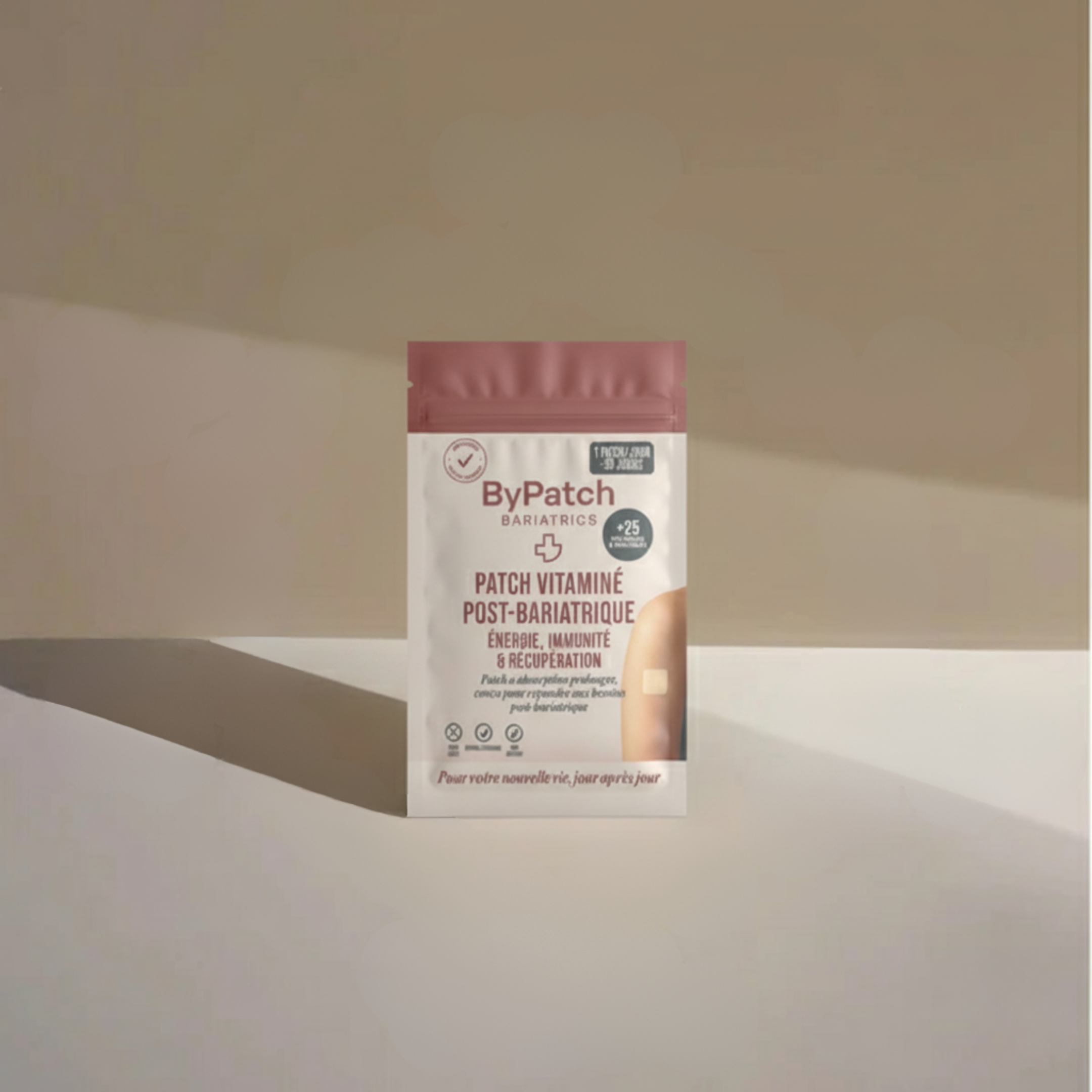 ByPatch est une alternative aux compléments en comprimés. Chaque patch contient des vitamines et minéraux conçus pour être diffusés progressivement à travers la peau, sans passer par l’estomac. C’est particulièrement utile lorsque l’absorption orale est difficile ou inconfortable après une chirurgie bariatrique.